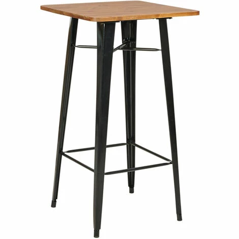 - Bar-Tisch mit Tischplatte aus Pinienholz und Metall-Beinen