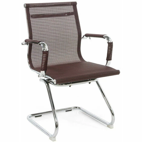 Moderner Besucherstuhl mit luftigem Textil-Netzbezug und verchromten Metallelementen. Sitzhöhe ca. 45 cm.