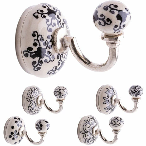 Tolles Set mit 5 Haken in unterschiedlichen Dessins als Alternative zur klassischen Garderobe. Die Haken können universell eingesetzt werden, z.B. als Schmuckhalter oder Handtuchhaken.