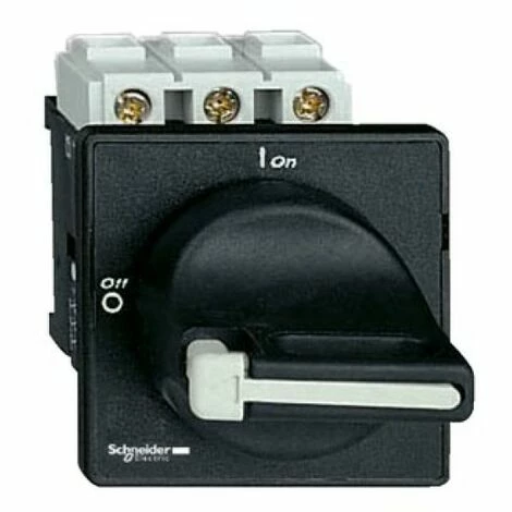 Hauptschalter, D=22,5mm, 3p, 690V AC, 32A, Griff schwarz abschließbar. Produktbereich: TeSys VARIO – Kurzbezeichnung des Geräts: Hauptschalter – Produkt oder Komponententyp: Lasttrennschalter mit Drehantrieb – Leistungsfähigkeit: hohe Leistung – Beschreibung der Pole: 3P – Netzwerktyp: AC – Montageart des Drehgriffs: direkt – Grifffarbe: schwarz – Farbe der Grifffrontplatte: schwarz – Eignung für Isolation: ja. Ihr Nutzen: Lasttrennschalter Eine Reihe von Sicherheitssteuerungsprodukten, die einfach zu bedienen und einzurichten sind, mit kompakten und ergonomischen Produkten für Anforderungen im Bereich von Startermotoren und Stop-Motoren. Anwendungen: Alle Maschinenanforderungen: – DOL Start oder Stop von Motoren – Lastschaltung des Maschinen-Steuerstromkreises..