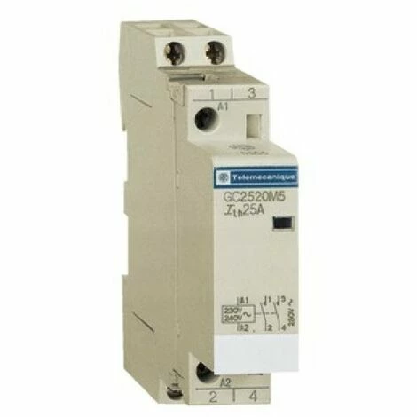 Standardschütz Typ GC, 1S 1Ö, 16A, 220…240 V AC. Produkt oder Komponententyp: modularer Schütz – Anwendung des Schützes: Beleuchtung, Heizung, Motorsteuerung – Nutzungskategorie: AC-7A, AC-7B – Beschreibung der Pole: 2P – Zus. des Polkontakts: 1 S + 1 Ö – Nennbetriebsstrom Ie: 16 A AC-7A, 5 A AC-7B – Aufstellungsart: 30°/vertikal – Steuerungstyp: Fernsteuerung – Montagemodus: steckbar – Montagehalterung: DIN-Schiene – Anschlüsse – Klemmen: Hauptstromkreis: Klemmen mit Schraubklemmung 1 Kabel 6 mm² – Kabelfestigkeit: fest – ohne Kabelende, Hauptstromkreis: Klemmen mit Schraubklemmung 1 Kabel 6 mm² – Kabelfestigkeit: flexibel – mit Kabelende, Hauptstromkreis: Klemmen mit Schraubklemmung 1 Kabel 6 mm² – Kabelfestigkeit: flexibel – ohne Kabelende, Hauptstromkreis: Klemmen mit Schraubklemmung 2 Kabel 1.5 mm² – Kabelfestigkeit: flexibel – mit Kabelende, Hauptstromkreis: Klemmen mit Schraubklemmung 2 Kabel 4 mm² – Kabelfestigkeit: fest – ohne Kabelende, Hauptstromkreis: Klemmen mit Schraubklemmung 2 Kabel 4 mm² –