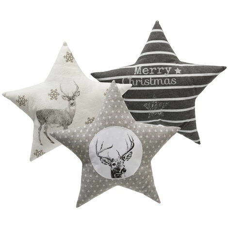 - Gefüllte, sternenförmige Dekokissen in 3 unterschiedlichen Dessins