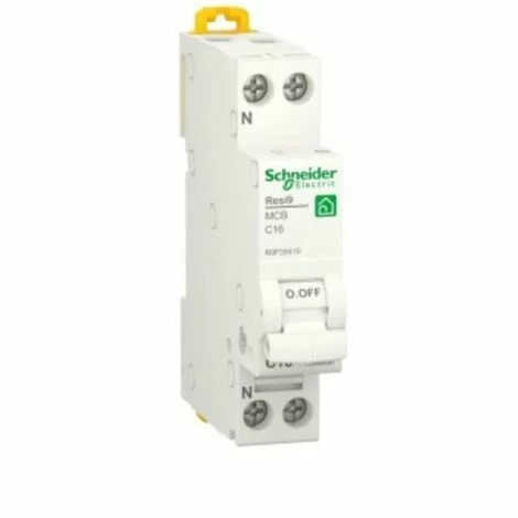 Schneider Electric Leitungsschutzschalter R9P35616-1P+N- 16A Kurve C Spezifikationen -Art des Produkts oder der Komponente Modularer Schalter – Anwendung Verteilung – Anzahl der geschützten Pole 1 -neutralstellung Links-Netzwerktyp AC -Thermisch-magnetischer Schutzschalter-Technologie-Kurve C-Code-Ausschaltvermögen 4500 A Icn nach EN/IEC 60898-1 bei 230 V AC 50 Hz-Frequenz 50/60 Hz-Bemessungsbetriebsspannung [Ue] 230 V AC 50/60 Hz-Bemessungsisolationsspannung [Ui] 440 V AC-Bemessungsstoßspannung [Uimp] 4 kV-Bedienungsart Hebel-Lokale Signalisierung EIN/AUS-Anzeige-Befestigungsart DIN-Schienenmontagebügel-Stufe 9 mm 2-Höhe 81 mm-Breite 18 mm-Tiefe 70,5 mm-Einbautiefe 44 mm-Mechanische Lebensdauer 20000 Zyklen-Elektrische Lebensdauer 7500 Zyklen-Abisolierlänge 13 mm für oberen oder unteren Anschluss-Anzugsdrehmoment 2 Nm für oberes oder unteres Teil-Differentialschutz IP20Stromstärke: 16 A