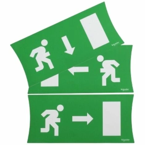 Kit mit 3 Piktogrammen (einseitige Symbolik rechts, links, unten) für Schneider RILUX Notleuchten 8W. Höhe 88 mm, Breite 316 mm.