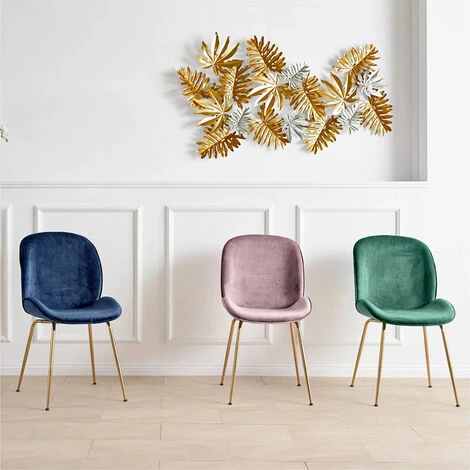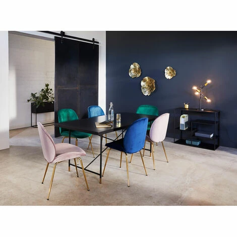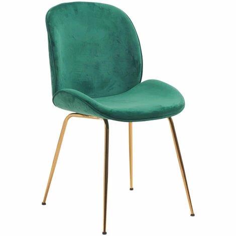 Eleganter Stuhl mit gepolsterter Sitzschale mit Samtbezug und goldfarbenen Beinen aus Metall. Toll als Esszimmerstuhl, Besucherstuhl im Wartezimmer oder als Konferenzstuhl. Bitte berücksichtigen Sie, dass Samt je nach Lichteinfall und Streichrichtung farblich heller oder kräftiger erscheint.