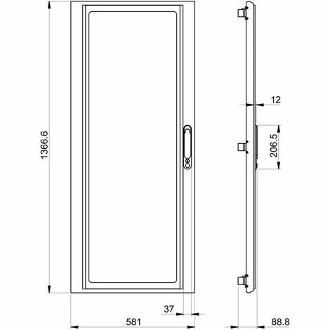 Schneider PrismaSet G W600 27M transparente Tür mit den folgenden Merkmalen: