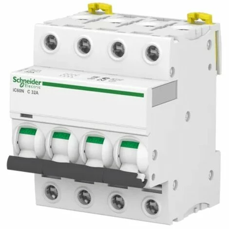 Leistungsschalter iC60N Acti 9, 4P, 32A, Kurve C, IP20, thermomagnetisch, zum Trennen geeignet, Kontaktstellungsanzeige, Griffsteuerung, Auslöseanzeige, feste Montage, DIN-Schienenhalterung, Erdschlussschutz mit unabhängigem Block , 85 x 72 x 78,5 mm, 0,5 kg, Weiß. Ausschaltvermögen: 10 kA Icu nach EN 60947-2, 180,250 V DC, 36 kA Icu nach EN 60947-2, 12,133 V AC 50/60 Hz, 20 kA Icu nach EN 60947-2, 220,240 V AC 50/ 60 Hz, 6 kA Icu nach EN 60947-2, 440 V AC 50/60 Hz, 10 kA Icu nach EN 60947-2, 380.415 V AC 50/60 Hz, 10 kA Icu nach IEC 60947-2, 180.250 V DC, 6000 A Icn nach EN 60898-1, 400 V AC 50/60 Hz, 6000 A Icn nach IEC 60898-1, 400 V AC 50/60 Hz, 20 kA Icu nach IEC 60947-2, 220.240 V AC 50/60 Hz, 36 kA Icu gemäß IEC 60947-2, 12,133 V AC 50/60 Hz, 6 kA Icu gemäß IEC 60947-2, 440 V AC 50/60 Hz, 10 kA Icu gemäß IEC 60947 -2, 380,415 V AC 50/60 Hz, Gebrauchskategorie: Kategorie A nach IEC 60947-2, Kategorie A nach EN 60947-2, geeignet zum Trennen: ja nach IEC 60947-2, ja nach IEC 60898- 1, ja nach EN 60947-2, ja nach EN 60898-1, Normen: IEC 60947-2, EN 60898-1, IEC6089 8-1, EN 60947-2.