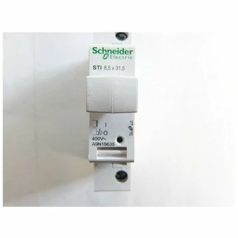 Trennbarer Sicherungshalter STI 1P 400V. Produkt entspricht der Norm EN 60269-3. und UNE-EN 60947-3: Anschluss durch Rahmenklemmen für starre Kabel bis 10 mm2 (6 mm2 flexible Kabel), vollständig offener Schnitt. Ein Raum im Inneren ermöglicht das Auffinden einer Ersatzsicherung und die Signalisierung durch eine optionale Kontrollleuchte.